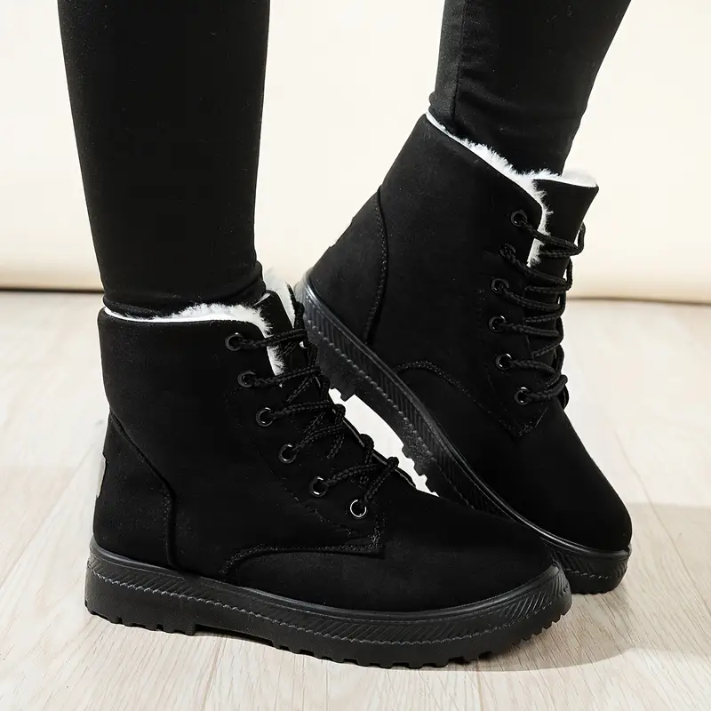 Women's Solid Color Short Boots, Lace - up, Fleece - lined Warm Ankle Boots